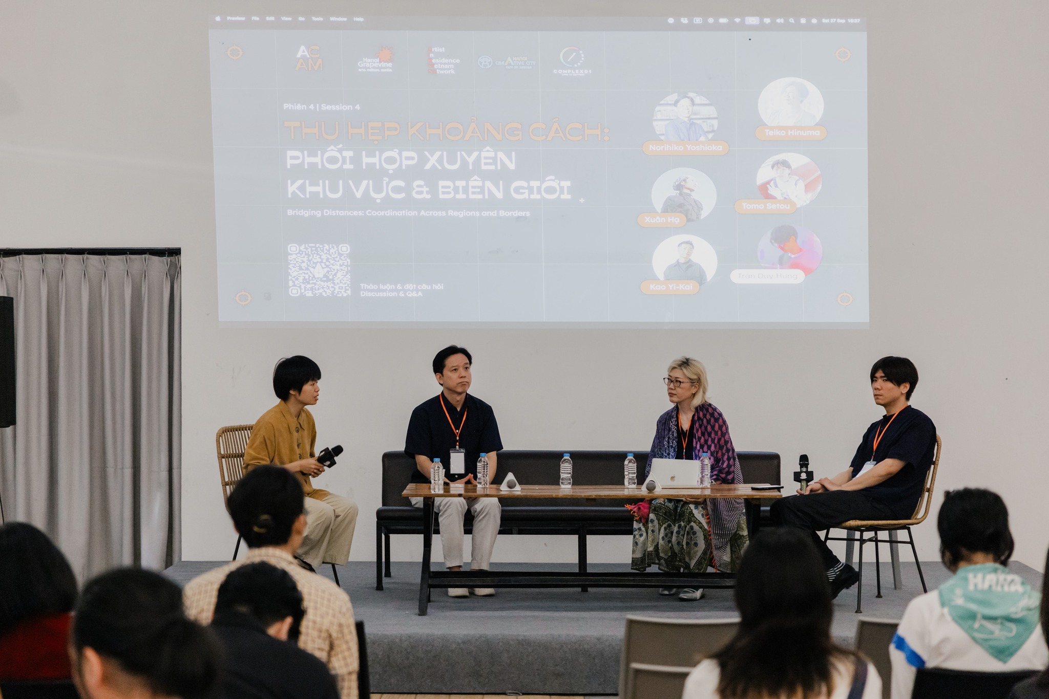 Moderated by Tran Duy Hung, the final session opened international dialogues with Yoshioka Norihiko (Japan Foundation), Teiko Hinuma (AIR Network Japan), Kao Yi-kai (Thinker’s Studio, Taiwan), Tomo Seto (Aomori Contemporary Art Center), and Xuan Ha (A song, Danang). Speakers discussed geographical distance in cultural exchange, designing reciprocal international programs, and barriers related to visas, funding and language in global mobility.