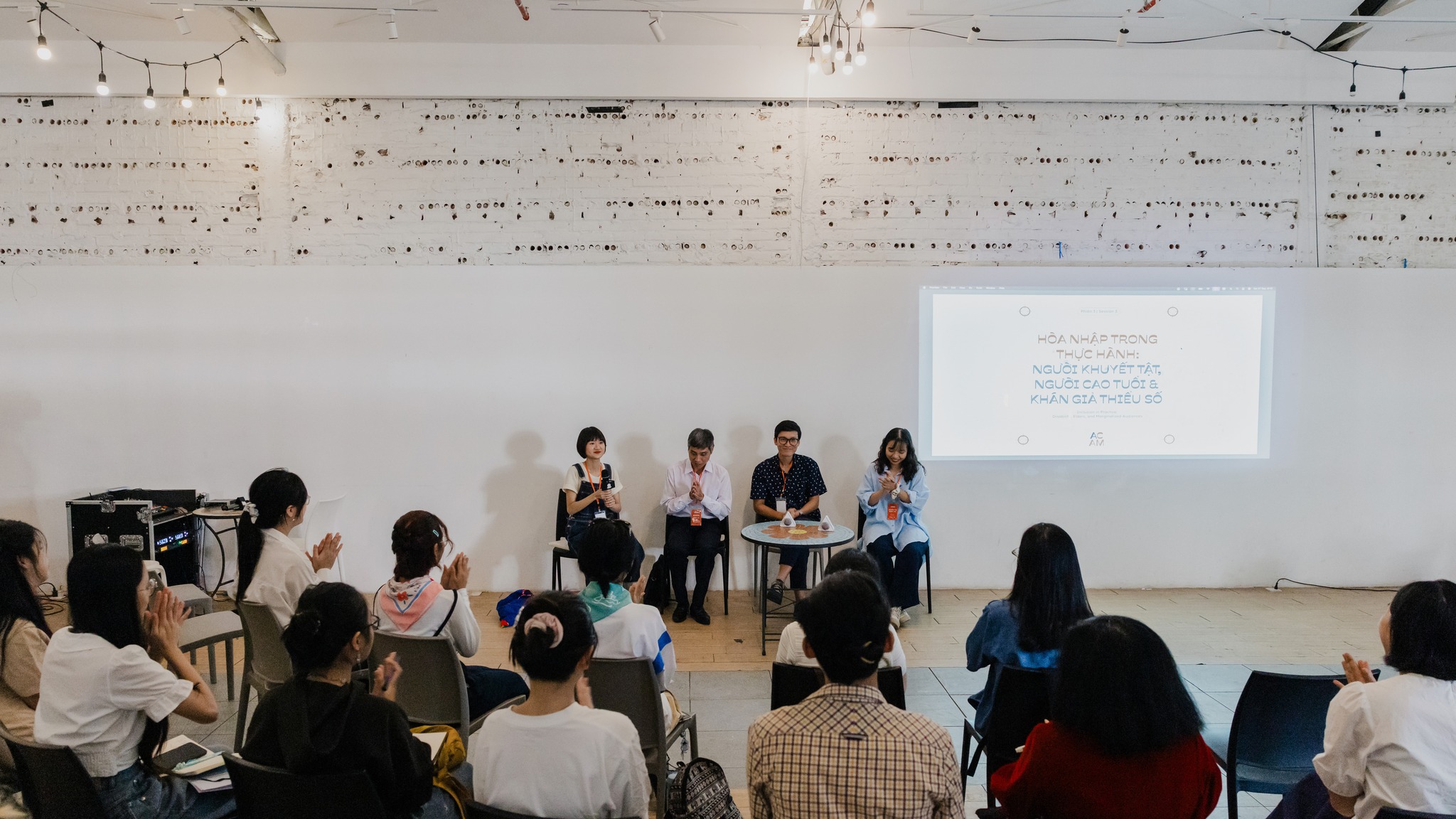 The second day began with a session on inclusion in the arts moderated by Nguy Hai An. Nguyen Thi Mong Thu (To he), Hoang Van Ly (Hoan Kiem District Blind Association), and Nguyen Tieu Quoc Dat (Think Playgrounds) shared insights on designing artistic programs and spaces with accessibility to physical, sensory and emotional needs, as well as approaches to audiences beyond urban centers.