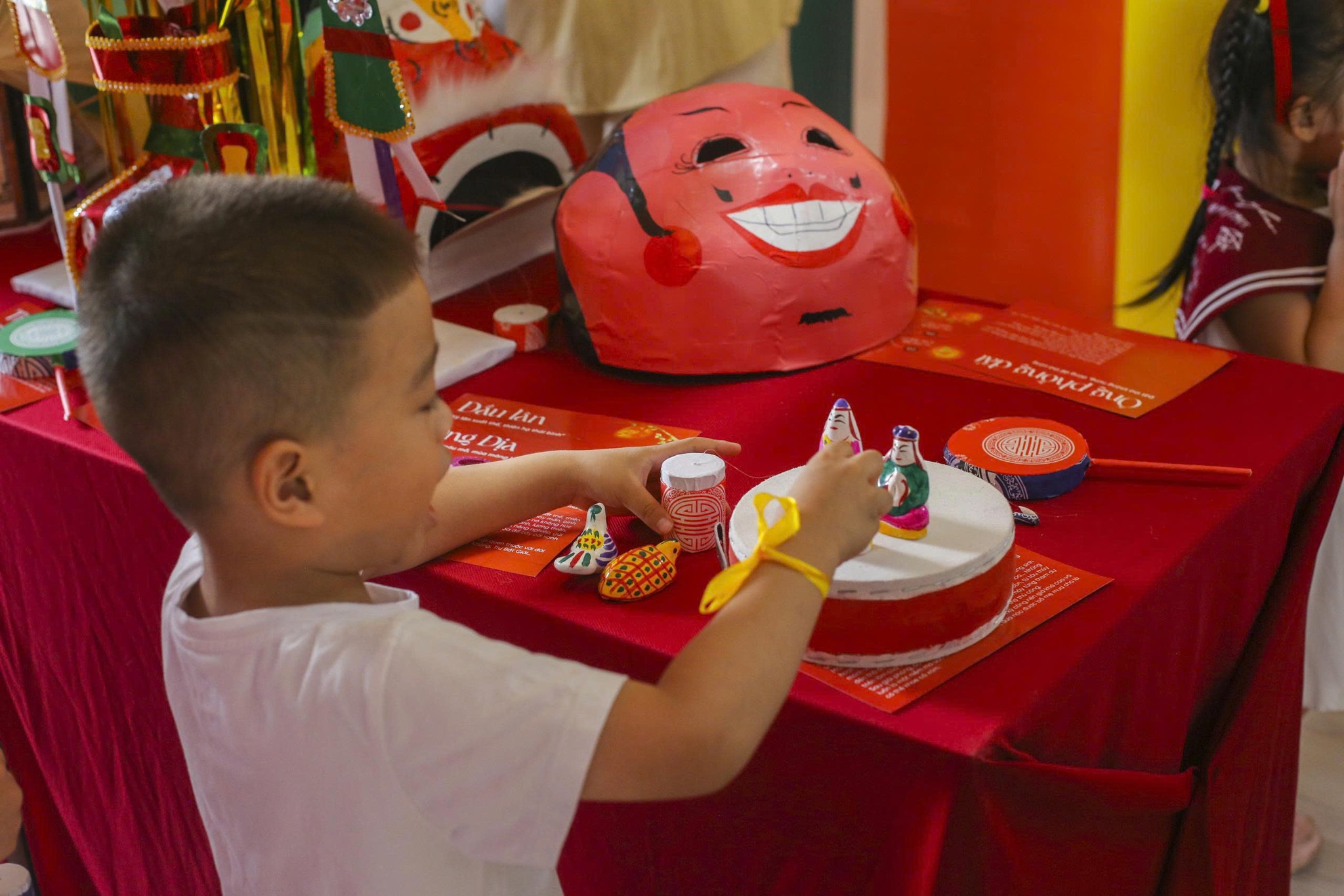 Amid this colorful space, a series of creative workshops captivated both children and adults alike. Young participants rolled dough to make mooncakes, printed woodblocks, crafted drums, and built miniature puppet stages—simple yet deeply meaningful activities that brought Vietnamese culture to life. Each moment of discovery, each laugh shared between parent and child, became a cherished memory—a small “engraving” of connection and joy that will linger long after the lanterns fade.