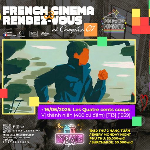 FRENCH CINEMA RENDEZ-VOUS is a new weekly event that will introduce French cinema’s richness and diversity with a different film every Monday at COMPLEX 01, Hanoi. 19:30 Every Monday night Polygon Musik, 1st floor – COMPLEX 01, no 29 lane 31 alley 167 Tây Sơn street, Hanoi Surcharge: 50.000đ/ person Register: Buy tickets at COMPLEX …