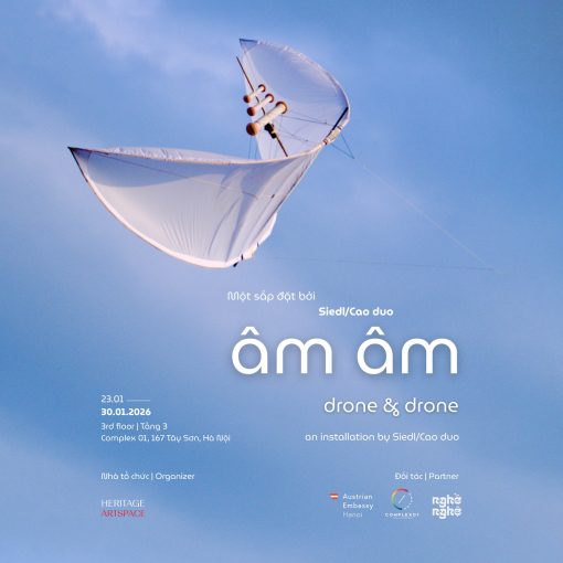 Âm Âm | Drone & Drone An exhibition of Cao Thanh Lan & Gregor Siedl (Siedl/Cao duo) 14:00 – 18:00, Monday – Friday | 11:00 – 19:00, Saturday & Sunday; from 24.01 to 30.01.2026 Opening: 6:00 PM, Friday, January 23, 2026 3rd floor Complex 01, 29/31/167 Tây Sơn, Hà Nội Free entry Cao Thanh Lan …