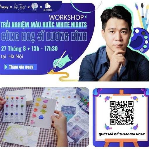 Time: 30/07/2023 Address: Event Space Registration link: https://forms.gle/iJoqaAMvGQdFyE2W6 THE WORKSHOP IS TOTALLY FREE Moreover, all participants in the Workshop also received a meaningful gift bag, including: Opportunity to learn and experience watercolor with artist Luong Binh – White Nights Brand Ambassador in Vietnam. Born in 1991, he is a talented young artist in the field of painting …