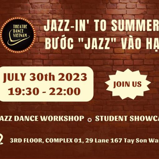 Time: 30/07/2023 Address: Event Space TDV JAZZ-IN’ TO SUMMER Following the success of TDV “JAZZ-ĐÌNH” & FRIENDS, Theatre Dance Vietnam will hold a brand new event to sum up the last 3 months of Summer Term. TDV JAZZ-IN’ TO SUMMER carrying the spirit of bright summer days, promises to be a community event full of joy and …